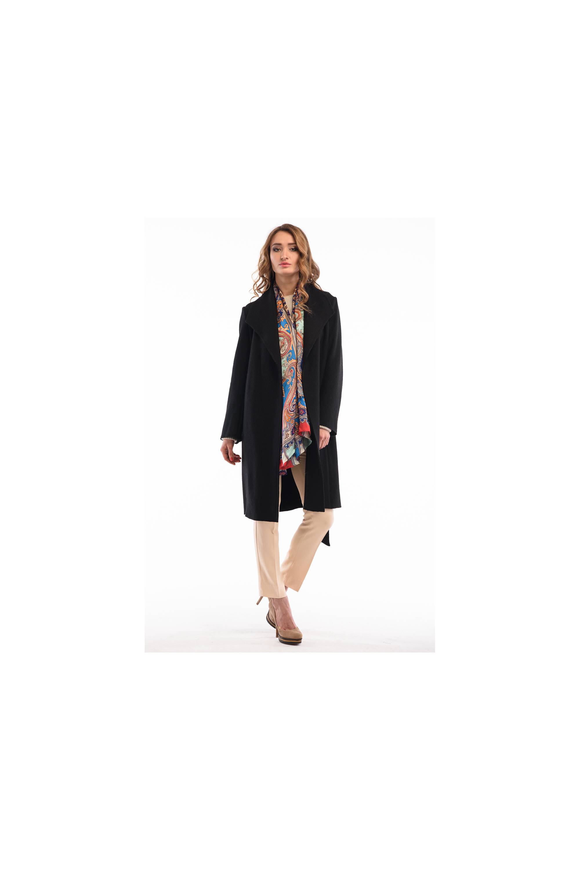 Кашемировое пальто в классическом черном цвете.
