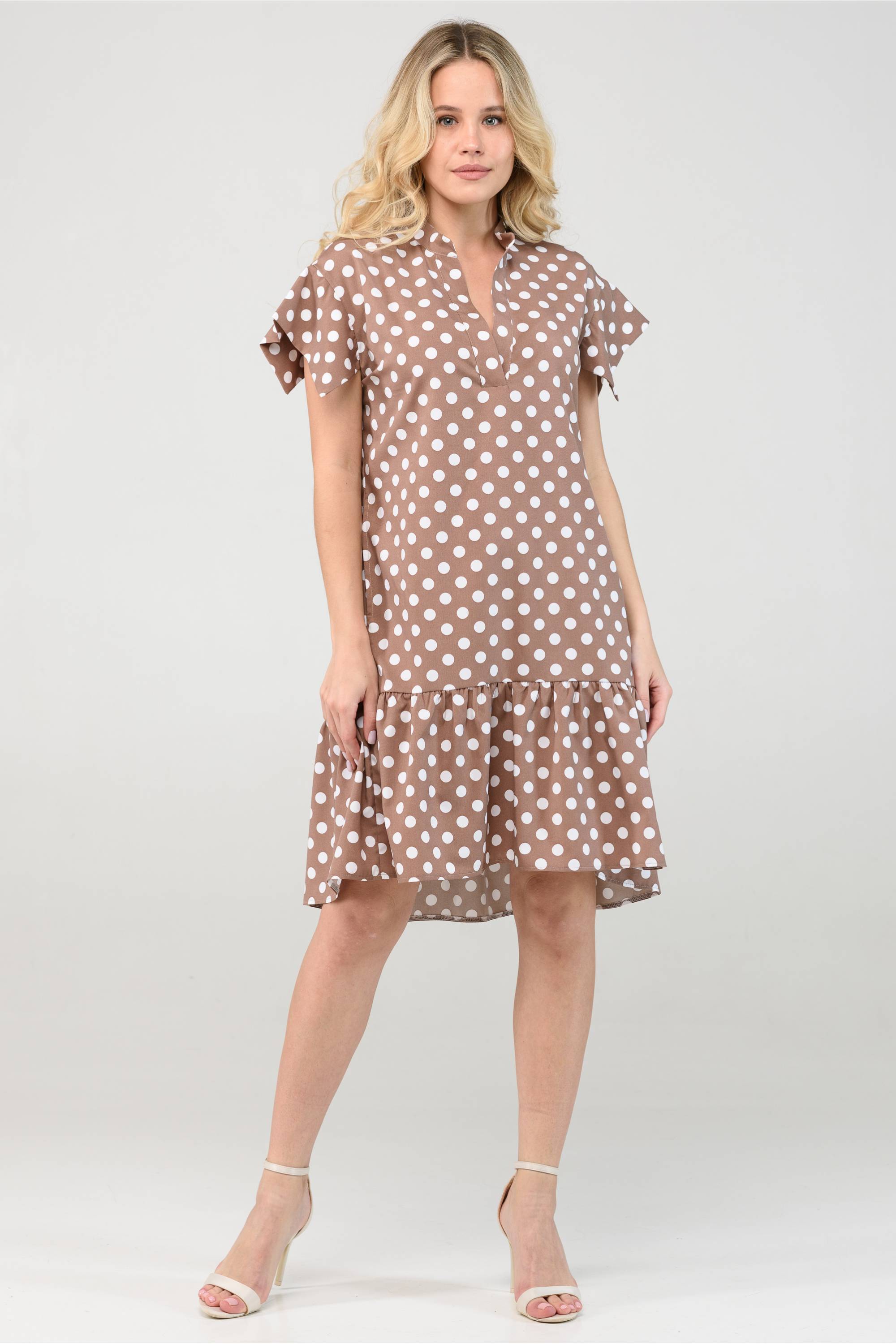 Платье до колена в цветной горох.